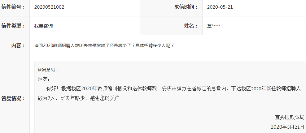 內(nèi)容:請問2020教師招聘人數(shù)比去年是增加了還是減少了?具體招聘多少人呢?
