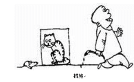 4、漫畫(huà)題:地上有一只老鼠,有一個(gè)人在墻上畫(huà)了一只貓,旁邊寫(xiě)著“措施”,然后這個(gè)人就走了。談?wù)勀愕目捶ā?/span>
