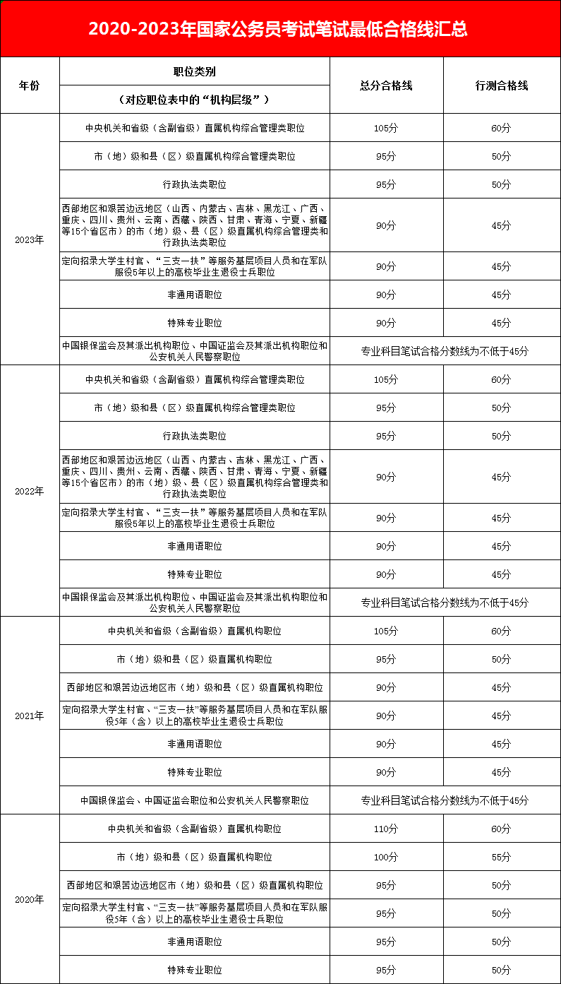 中央機關(guān)及其直屬機構(gòu)2023年度考試錄用公務(wù)員筆試成績和合格分?jǐn)?shù)線公布,具體如下: