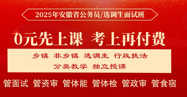 我們根據(jù)歷年面試考情定制了2025年安徽省公務(wù)員面試班,業(yè)內(nèi)實(shí)力專家團(tuán)隊(duì)將與您并肩戰(zhàn)斗!我們將提供科學(xué)的課程安排與出色的心理訓(xùn)練和技術(shù)指導(dǎo),戰(zhàn)勝一切對手!助您成公!