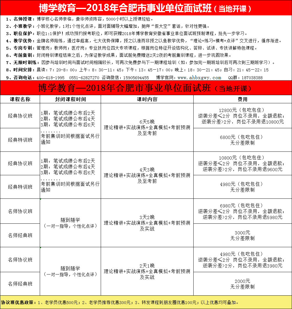 | 五、 | 報(bào)名電話: 400-618-1995 0551-62827270 咨詢微信:15905694455、15305510574 |